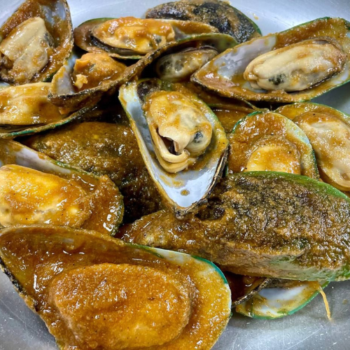 Mussels infused with aromatic Cajun spices, maintaining their natural brininess.