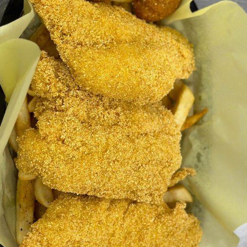 Tender, flaky flesh encased in a crunchy golden brown exterior. Seasoned to perfection.